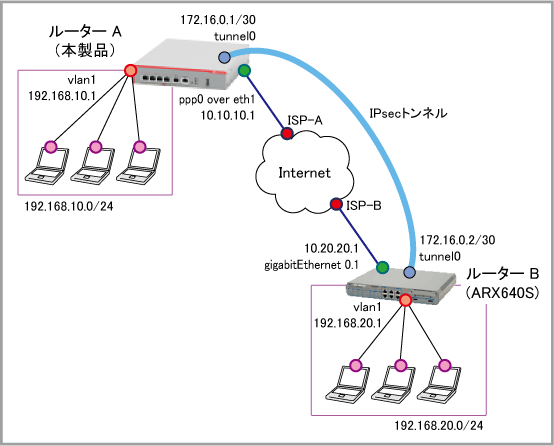 | WAN側(ppp0)IPアドレス | 10.10.10.1/32 | 10.20.20.1/32 |
