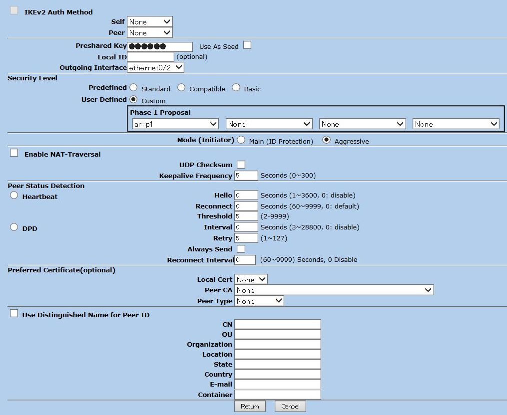 IKEフェーズ1(ISAKMP)設定