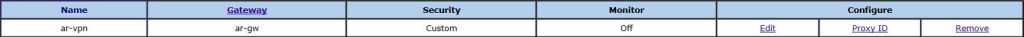 IPsecトンネルリスト画面に戻ると、先ほど作成した「ar-vpn」が表示されるので「Proxy ID」をクリックします。