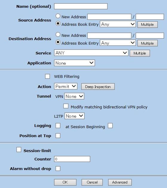 以下のようにFrom/ToのZoneを選択して[New]をクリックします。