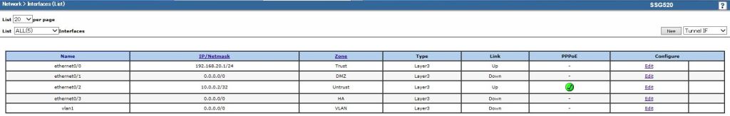 画面左のメニューから[Network]-[Interfaces]を選択し、インターフェースリスト画面が表示されたら、画面右上のリストから[Tunnel IF]を選択して[New]をクリックします。