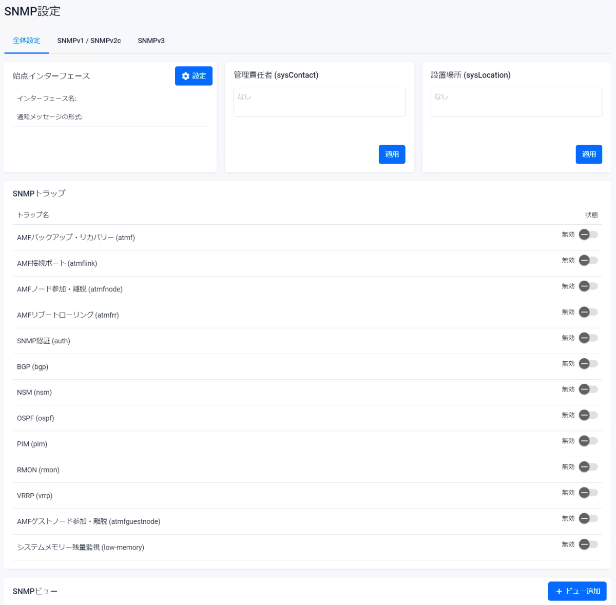 | 通知ビュー名 | グループ所属ユーザーが受け取れる通知MIBオブジェクトの範囲を示すビューの名前が表示されます |