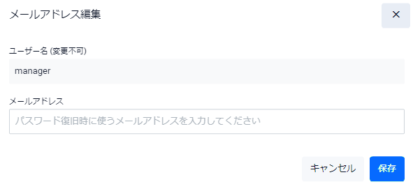 | パスワード編集ボタン | ユーザーのパスワードを変更するためのパスワード編集ダイアログが開きます |