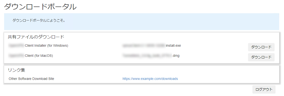 Note上記の設定ファイル例は参考のために示した最小限の設定であり、動作を保証するものではありません。使用するクライアントやそのバージョン、OS、ネットワーク環境などによって必要な設定は異なりますので、あらかじめご了承ください。なお、OpenVPNを使用するための具体的かつ全体的な設定については「設定例集」もご参照ください。