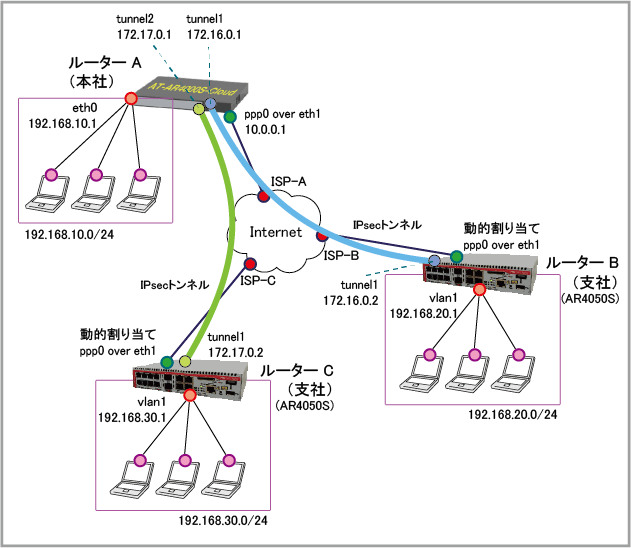 | ISP接続用ユーザー名 | user@ispA | user@ispB | user@ispC |