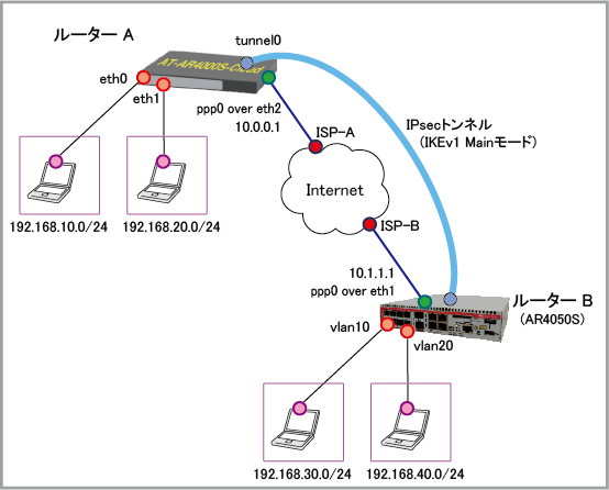| WAN側(ppp0)IPアドレス | 10.0.0.1/32 | 10.1.1.1/32 |