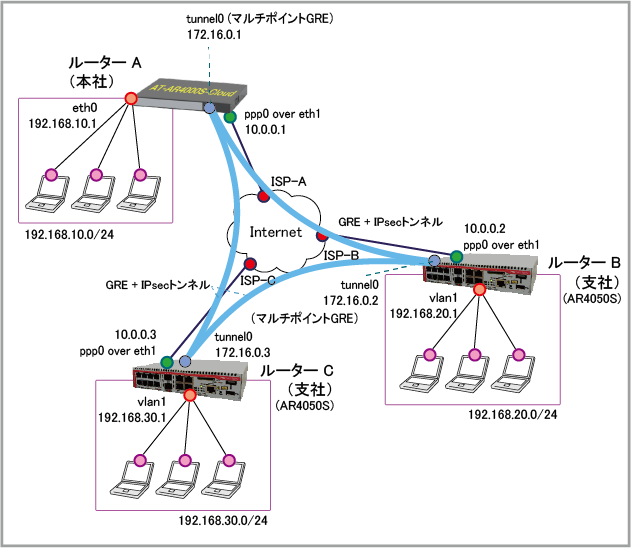 | WAN側(ppp0)IPアドレス | 10.0.0.1/32 | 10.0.0.2/32 | 10.0.0.3/32 |