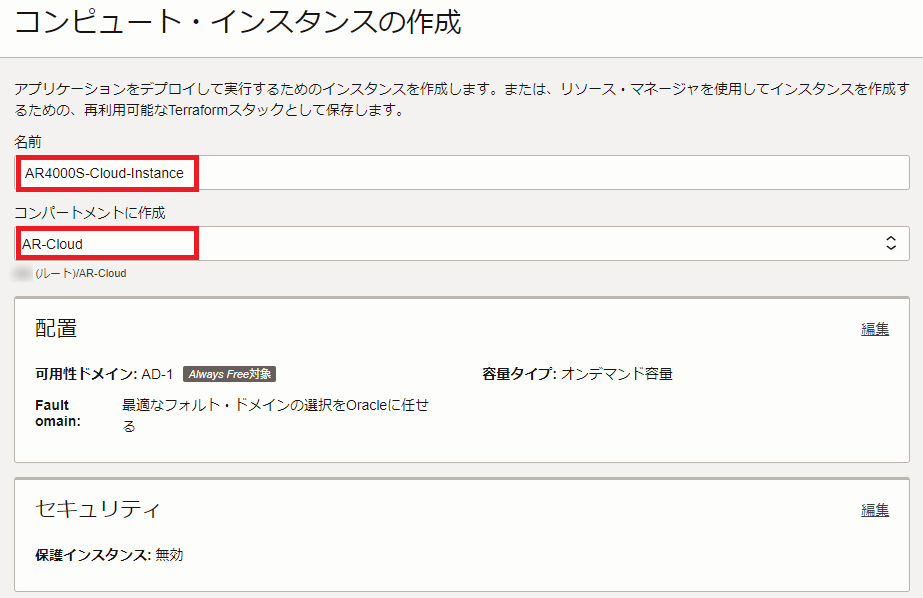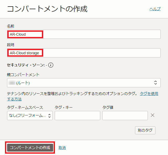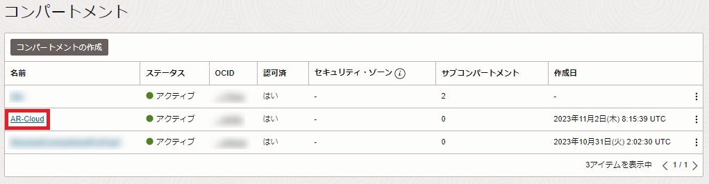 本ページではこれ以降、ここで新規作成したコンパートメント「AR-Cloud」を使うものとして説明します。