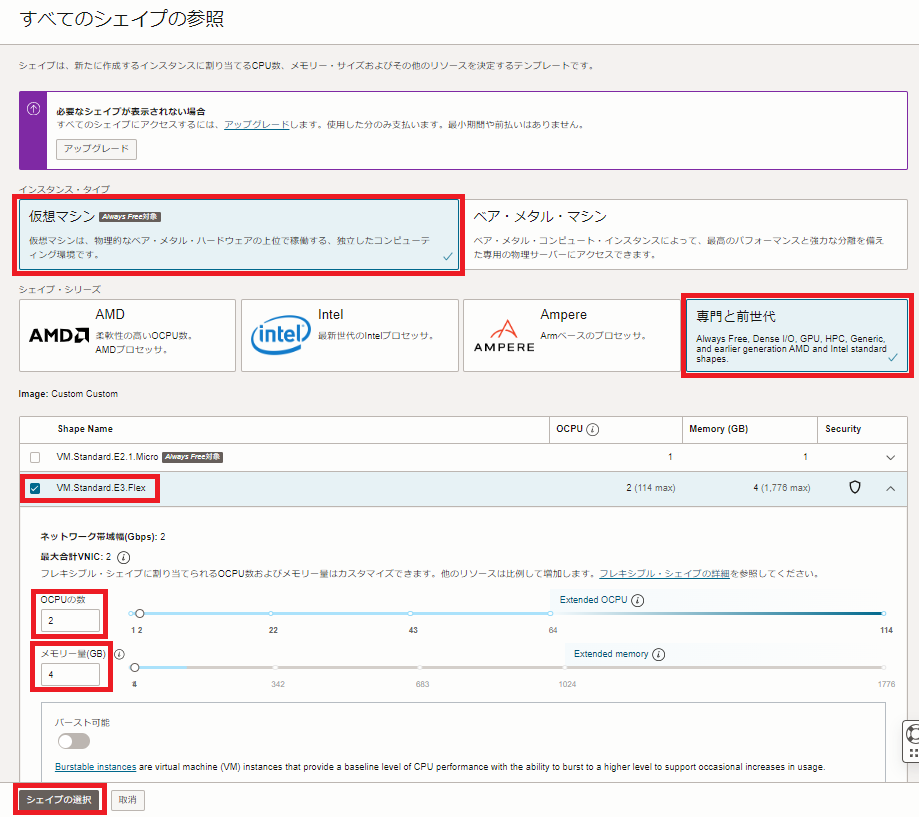 前の手順で作成したカスタム・イメージから本製品の仮想マシンインスタンスを作成します。