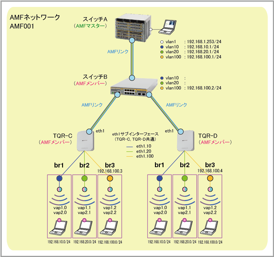 | vlan100 IPアドレス | 192.168.100.1/24 | |