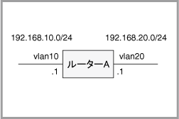 ここで「192.168.10.0/24 [1/0] via 192.168.20.1, vlan20」は、「192.168.10.0/24へは、vlan20インターフェース上のルーター192.168.20.1(ルーターA)経由で到達できる」の意味になります。スクエアブラケット([])で囲まれた2つの数値は、それぞれ管理距離(Administrative Distance)とメトリックを表します(スタティック経路ではメトリックは使用されないためつねに「0」と表示されます)。また、行頭の「S」は「static」、すなわち「スタティック経路」の省略記号です。「*>」は、該当経路が192.168.10.0/24への最適な経路であり、実際のパケット転送判断に使用されていることを示します。
