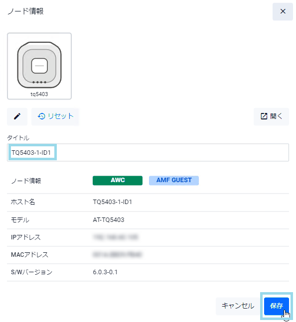無線LANコントローラーの管理下にある場合はAMFゲストノードかどうかにかかわらず「AWC」と表示され、無線LANコントローラーの管理下にないAMFゲストノードの場合は「Guest」と表示されます。