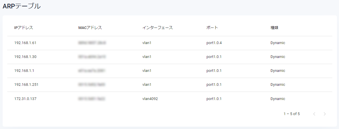 | ポート | MACアドレスの存在するポート番号が表示されます |
