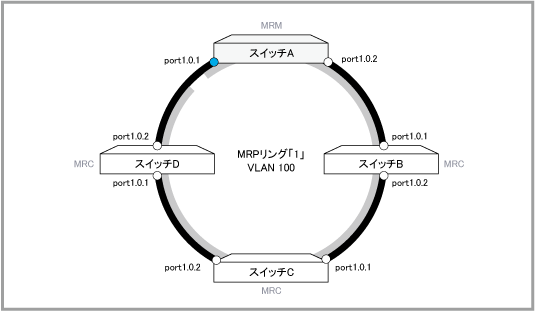 NoteMRPリング接続用ポートはタグなし(access)にもタグ付き(trunk)にも設定可能ですが、タグ付き(trunk)の場合は、vlan-idコマンドでVIDを指定してください。