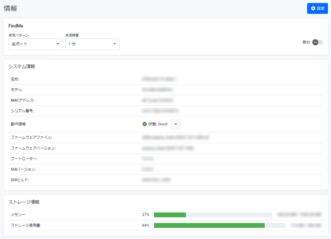 本製品とWeb GUIの基本的な情報を確認できます。