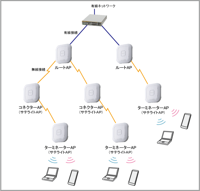 スマートコネクトネットワークにおいて、APは次のように大別されます。- ルートAP