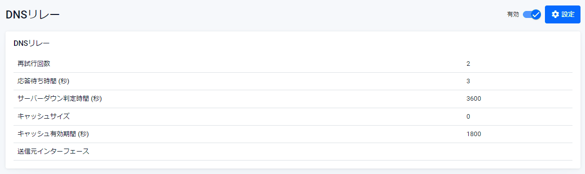 | 無効・有効スライドボタン | DNSリレーの無効・有効を切り替えます |