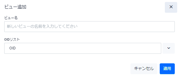 | OIDリスト | ビューを構成するOIDエントリーの一覧が表示されます。OIDエントリーを追加するには、右側の下向き矢印をクリックして「+ OIDを追加」をクリックし、ベースとなるOIDとエントリーの種類(含める=アクセスを許可、含めない=アクセスを拒否)を指定してください |
