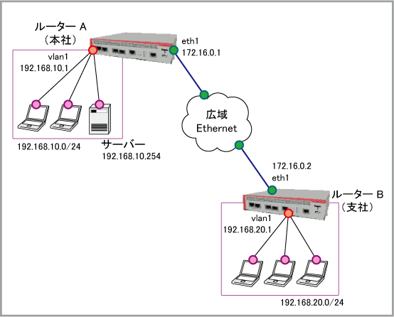 WAN側(eth1)IPアドレス 172.16.0.1/24 172.16.0.2/24