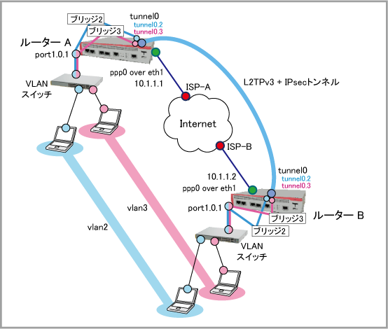 設定例集#15: L2TPv3+IPsec VPNを利用したIEEE 802.1Qタグ付きパケットのブリッジング