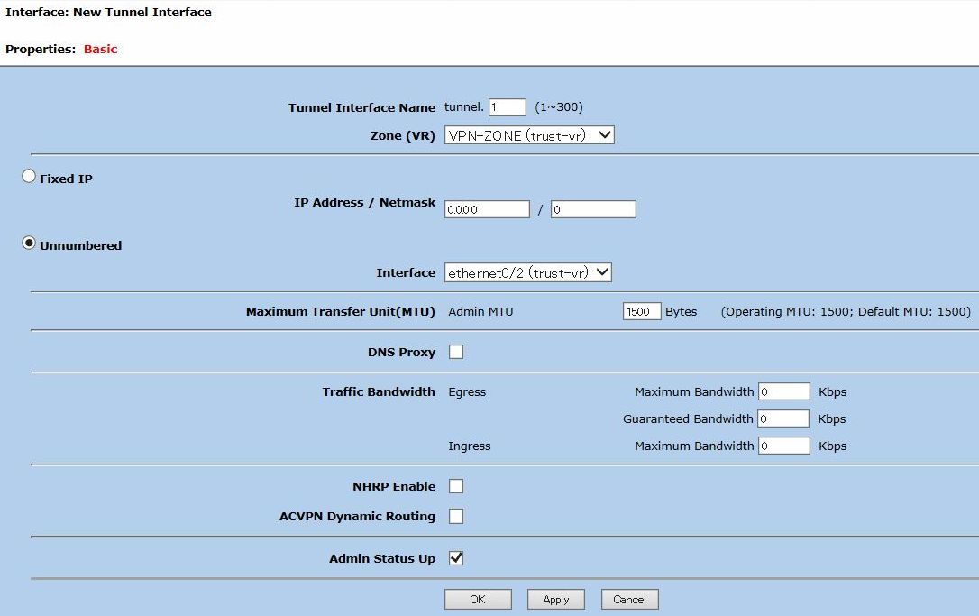 次に、IPsecで使用するトンネルインターフェースを作成します。