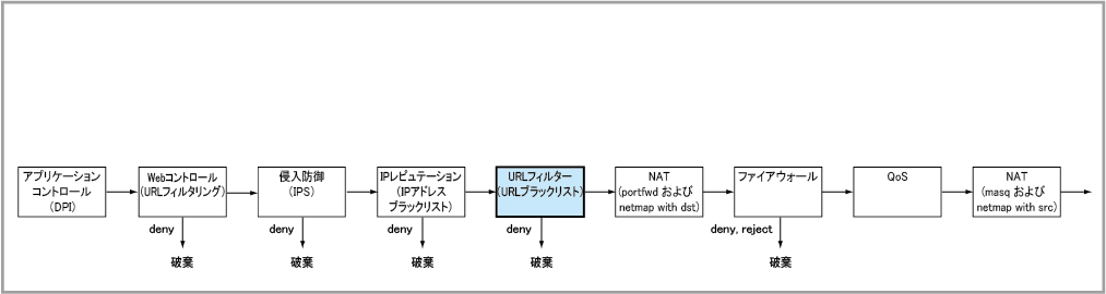 NoteHTTPSの通信では暗号化されたTLSセッション上でHTTPリクエストが送信されるため、アクセス先URLそのものを検査することはできません。ただし通常、TLSセッション開始時のClientHelloメッセージには接続先サーバーのドメイン名がSNIとして含まれるため、HTTPS通信に対してはこのドメイン名の情報を利用して処理を行います。