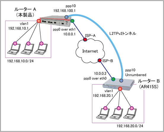 | LAN側(vlan1)IPアドレス | 192.168.10.1/24 | 192.168.20.1/24 |