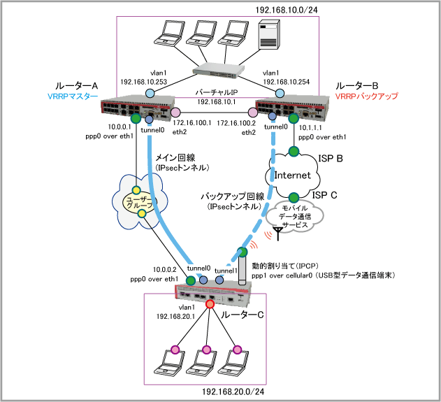 設定例集#39: Pingポーリングトリガーによるメイン回線から移動体データ通信サービスVPNバックアップへの自動切り替え(CUGサービス+移動体データ通信サービス~VRRP編~)
