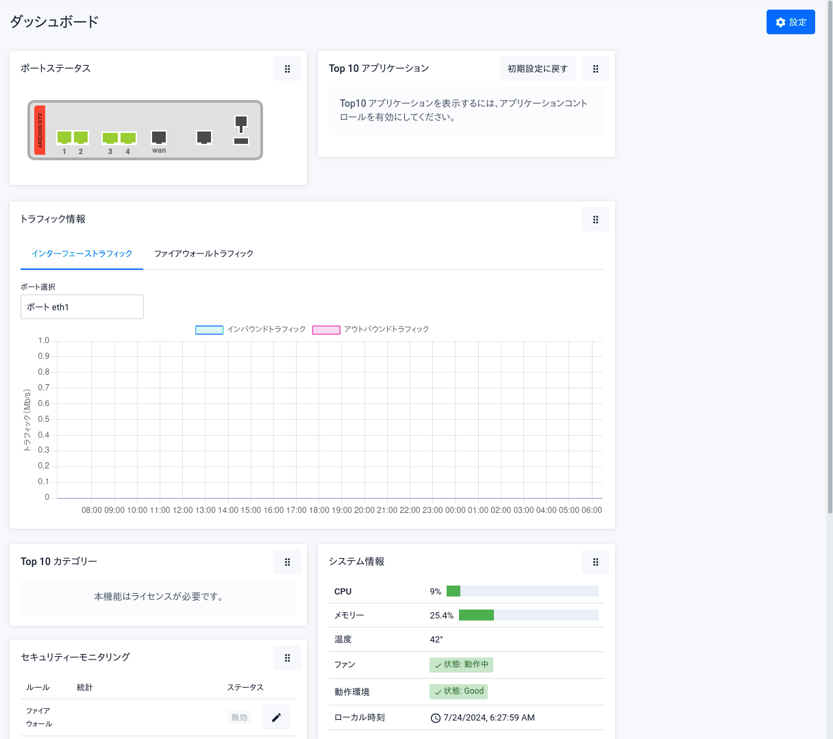 ダッシュボード画面は、各種情報を要約して表示するWeb GUIのホーム画面です。