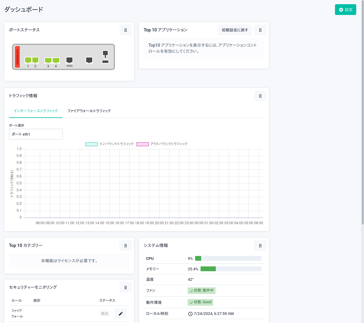 Note初期設定では、Web GUIの各画面で何も操作しない状態が5分続くと自動的にログアウトし、ログイン画面に戻ります。