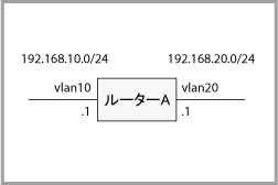 2. 直接接続されていないネットワーク192.168.10.0/24へのスタティック経路を登録します。同ネットワーク宛てのパケットは、ルーターAのvlan20インターフェース(192.168.20.1)に転送します。