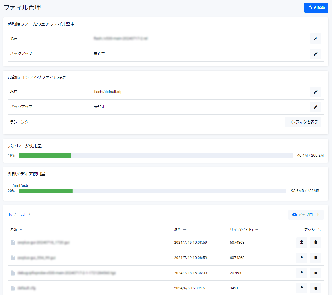 | ファームウェアファイル | 現在使用中のファームウェアイメージファイルが表示されます |