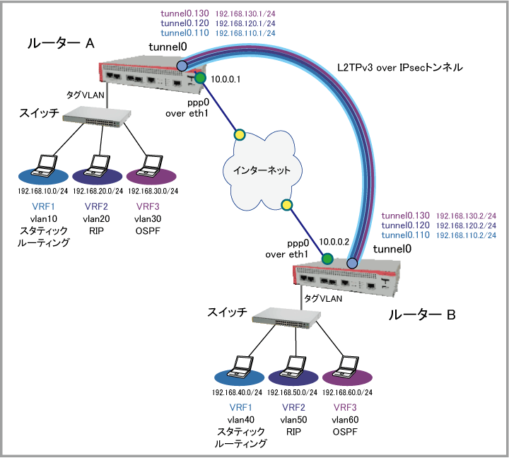 | トンネルサブインターフェース | tunnel0.110 | tunnel0.110 | |