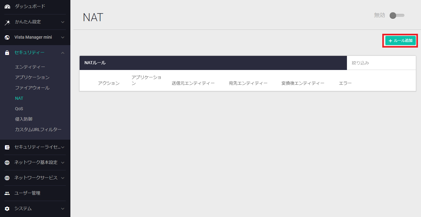 - Web GUIの「システム」>「日付と時刻」画面で「NTPの同期先を追加」をクリックします。
