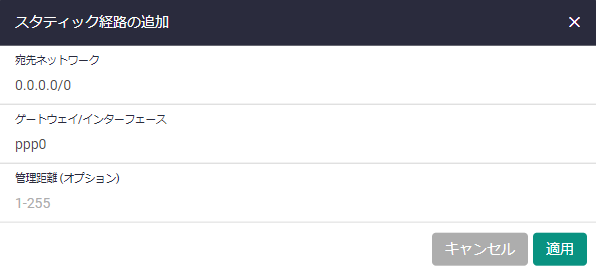 - WANポートeth1上にPPPoEインターフェースppp0を作成します。