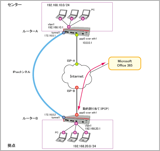 | IPsecトンネル(tunnel1)IPアドレス | 172.16.0.1/30 | 172.16.0.2/30 |