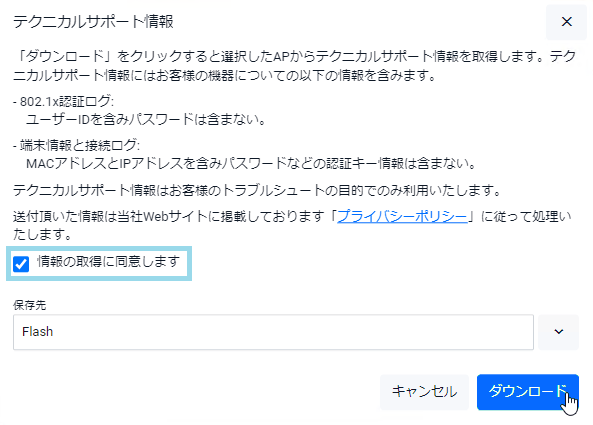 Note外部メディアに保存されたデータの確認方法は「無線LANコントローラー(AWC対応)」/「無線クライアント・隣接無線APログ」を参照してください。