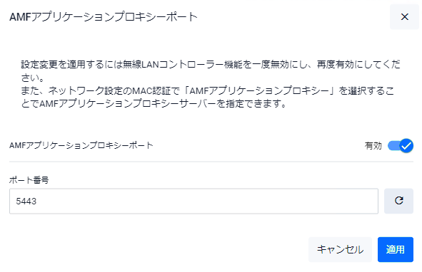 | AMFアプリケーションプロキシーポート | AMFアプリケーションプロキシーポートの無効・有効を選択します |