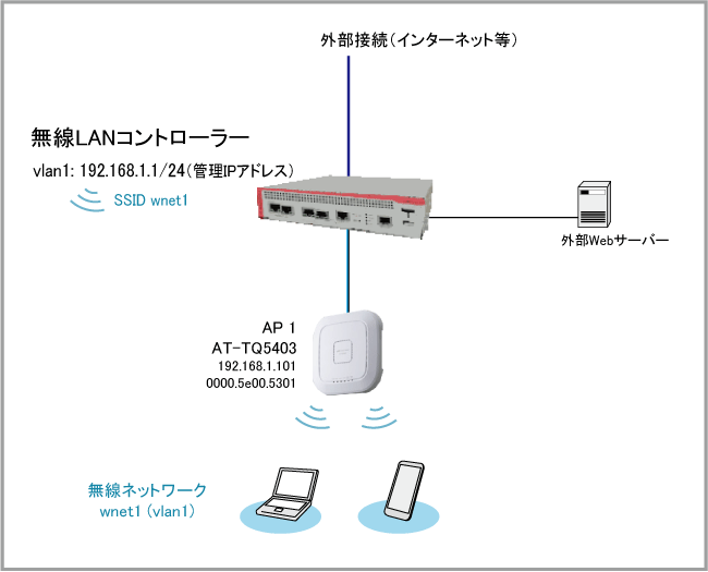 | 1 | 192.168.1.0/24 | 無線LANコントローラーと管理下APの通信に使用する管理用VLAN |