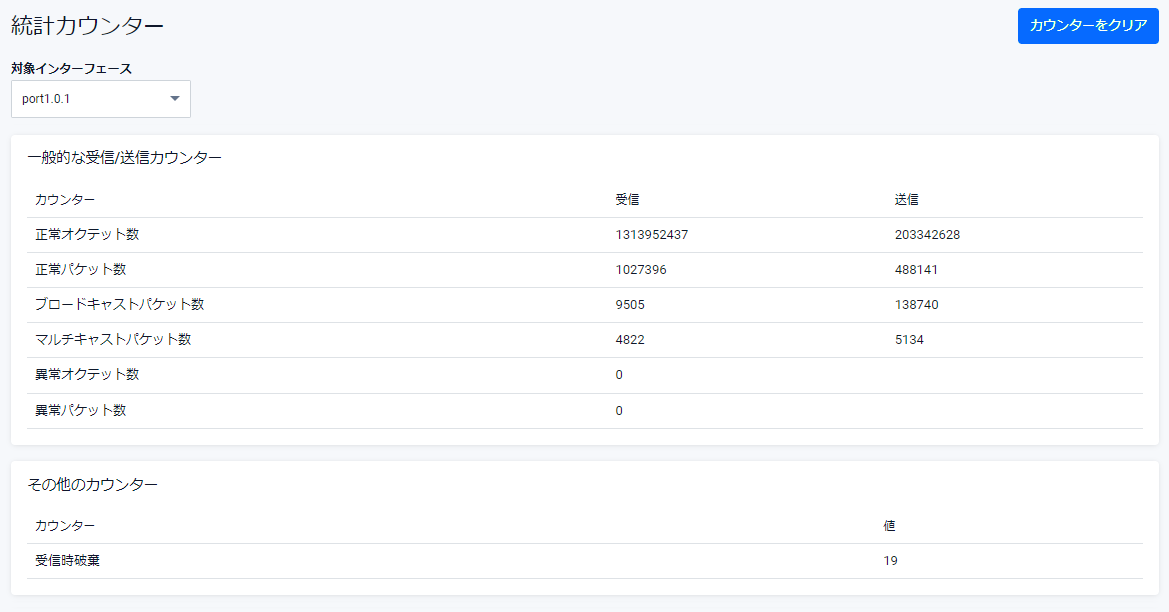 | オーバーサイズパケット受信数 | オーバーサイズフレーム受信数。正しい形式であるが、長さが1518オクテットより長いパケットの総数 |