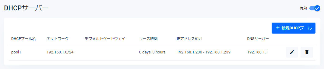 | 新規DHCPプールボタン | 新規DHCPプールダイアログが開きます |