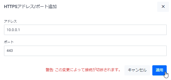 | 適用ボタン | 待ち受けアドレス/ポートを追加して前の画面に戻ります |