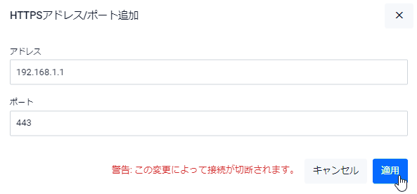 Note待ち受けアドレス/ポートを追加するとWeb GUIの接続がいったん切断されます。