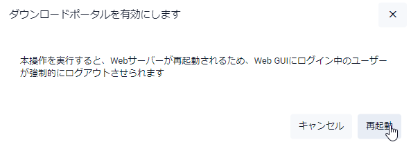 | ※ダウンロードポータルの有効・無効を切り替えるとWeb GUIの接続がいったん切断されます | |