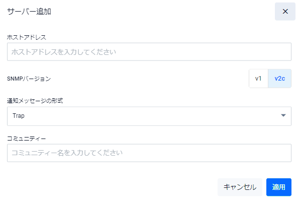 | 適用ボタン | トラップホストを追加して一覧画面に戻ります |