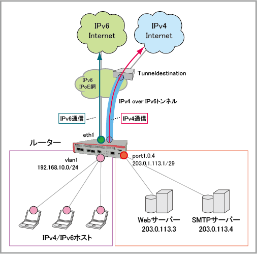 | IPv4グローバルアドレス | 203.0.113.1/29 |