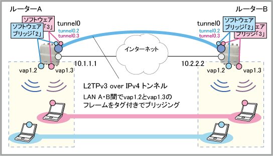 Note本手順では無線関連の設定(vap1.2、vap1.3の作成など)はあらかじめ完了しているものと仮定します。