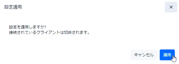 - 「設定適用」画面で「適用」ボタンをクリックします。