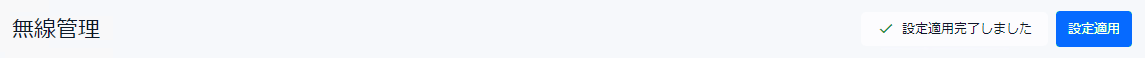無線設定の適用中はWeb GUI画面右上の表示が「設定適用中です」になりますので、次図のように表示が「設定適用完了しました」に切り替わるまで待ちます。
