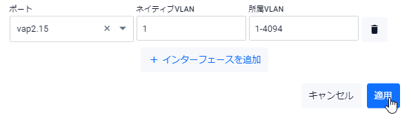 - 使用する無線/VAP:無線1 / VAP 15(vap1.15)